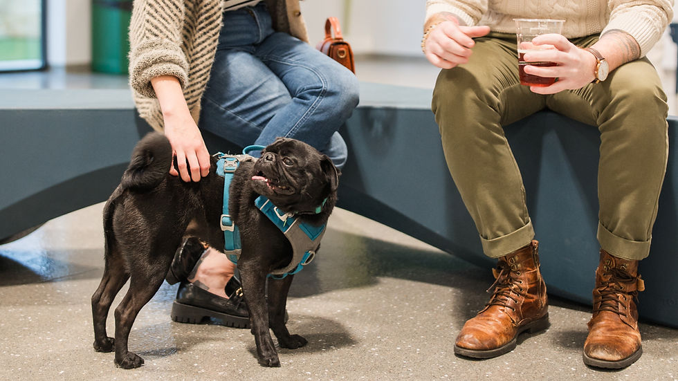✓ A clean, calm grooming space inside our people park + dog bar.
